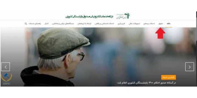 ۱_ برای این منظور ابتدا بایدبه وب سایت صندوق بازنشتگی مراجعه و با توحه به مراحل شرح داده شده، وارد بخش دریافت فیش حقوقی بازنشتگان کشوری شوید.