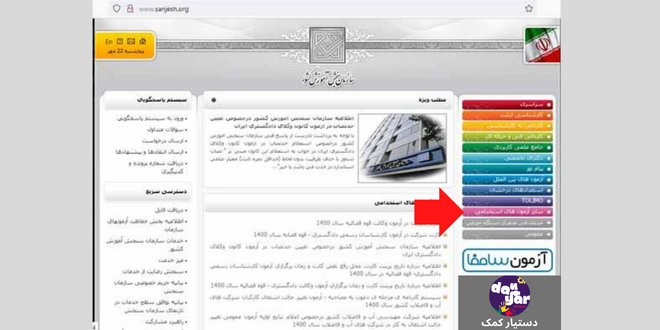 مرحله1: در ابتدا به سایت ثبت نام آزمون به آدرس sanjesh.org مراجعه کنید.