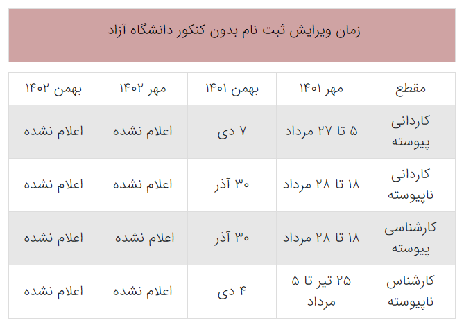 زمان ویرایش ثبت نام بدون کنکور دانشگاه آزاد ۱۴۰۲